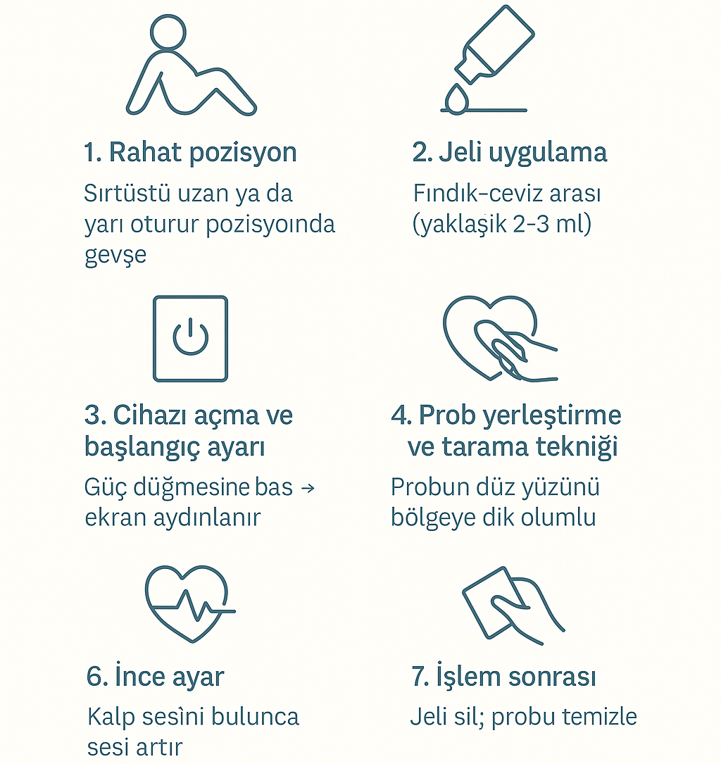 ultrasonik ses dalgalarını kullanarak bebeğin kalp atışlarını algılar.
